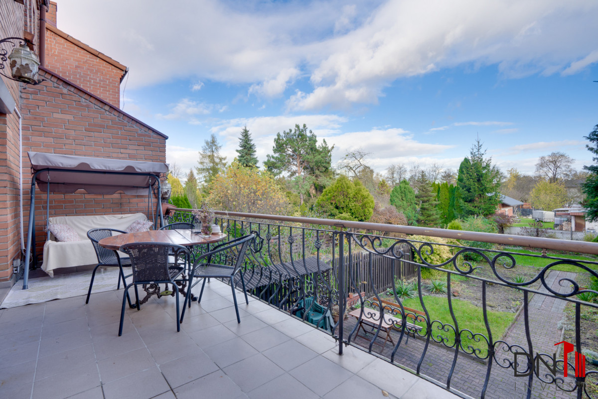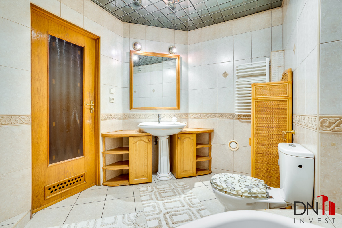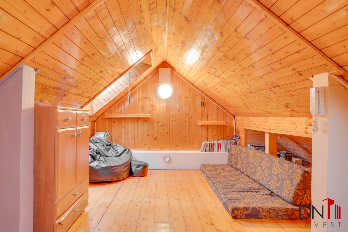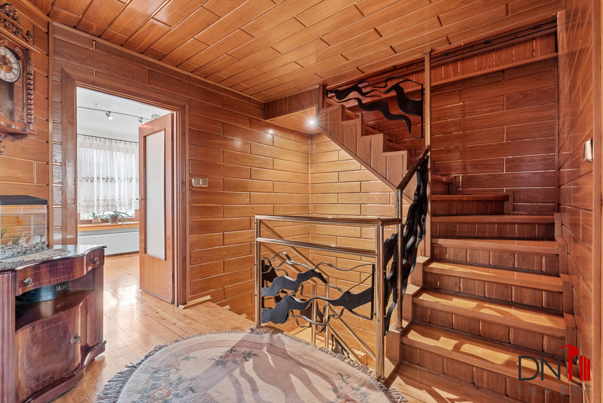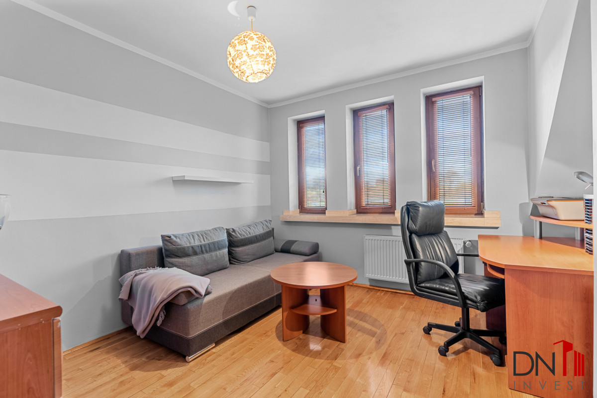 oraz łazienka. Całe drugie piętro zajmuje kameralny pokój.. Część piwniczna to garaż, pralnia z suszarnią, łazienka, pomieszczenie gospodarcze oraz dodatkowy pokój.