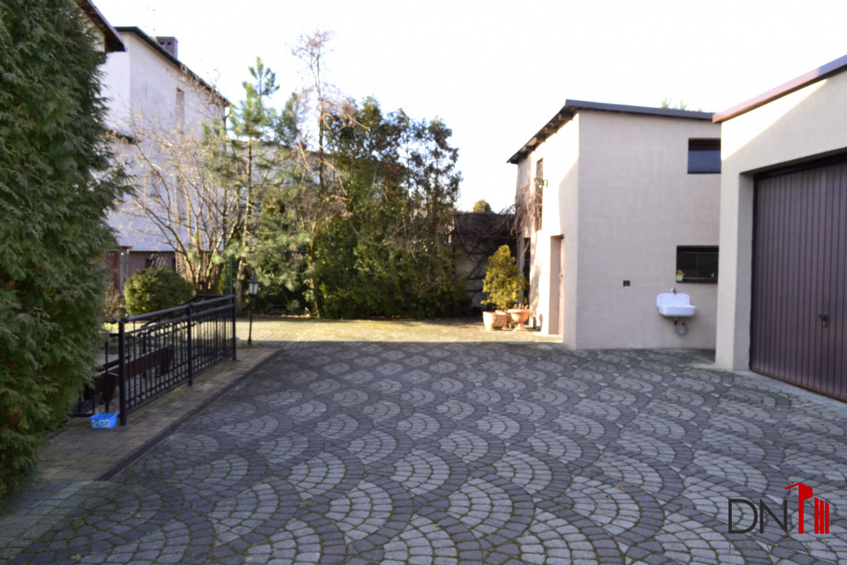 Na 651 metrowej działce znajdują się dodatkowo dwa garaże oraz pomieszczenie gospodarcze. Całość jest ogrodzona. Wjazd na posesje odbywa się przez automatycznie otwieraną, sterowaną pilotem bramę.