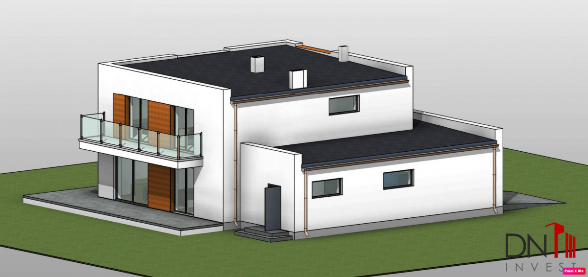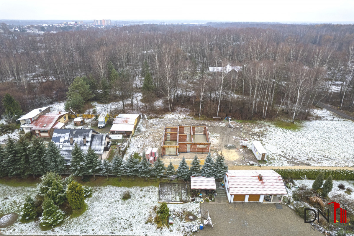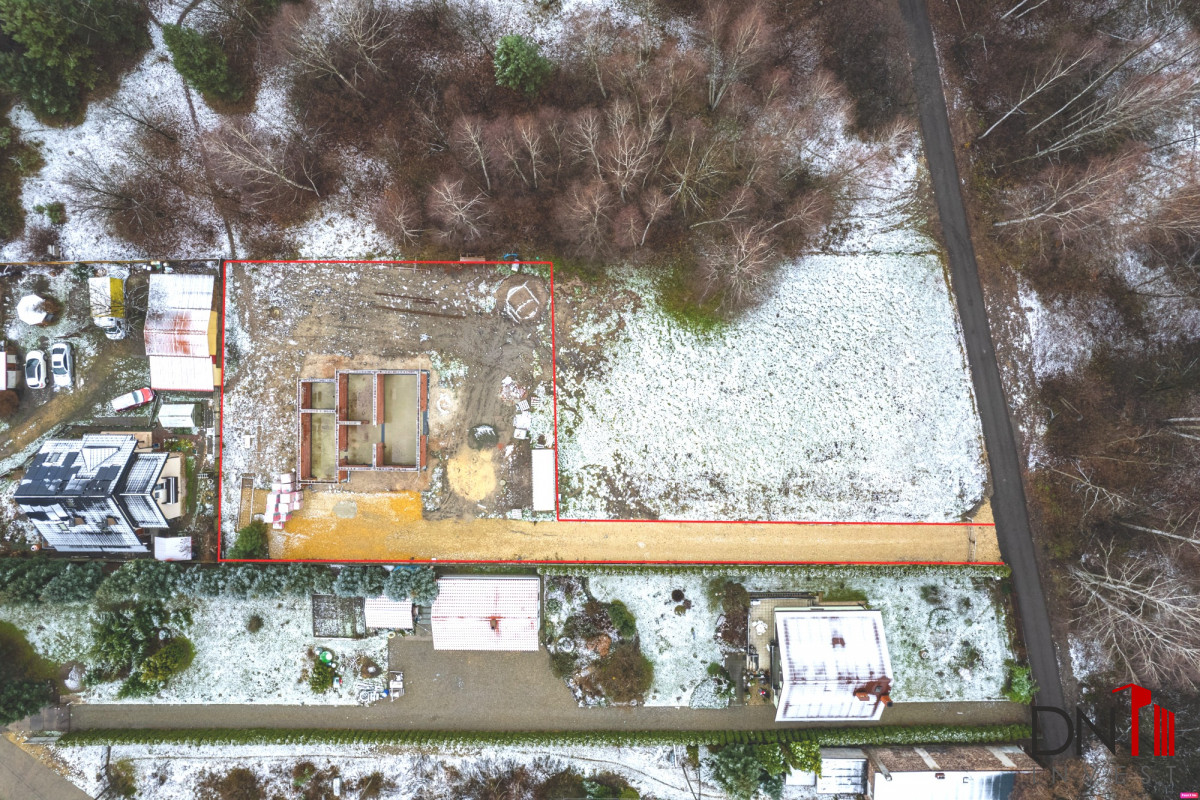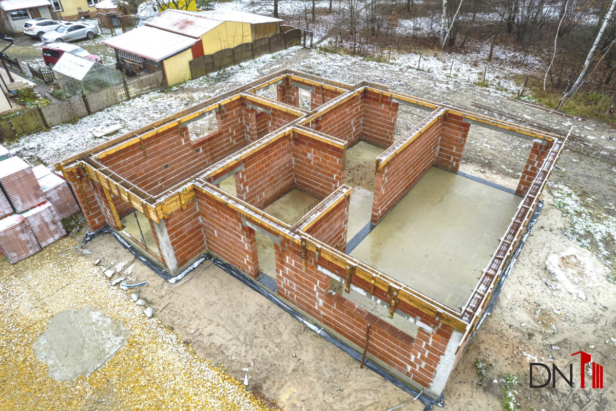 Na działce jest rozpoczęta budowa domu jednorodzinnego, którego wykonanie zaplanowano w technologii tradycyjnej według projektu widocznego na zdjęciach. Zostały wykonane prace budowlane obejmujące: wymianę gruntu oraz wyrównanie i utwardzenie terenu, wykonanie płyty fundamentowej oraz pierwszej kondygnacji budynku.
