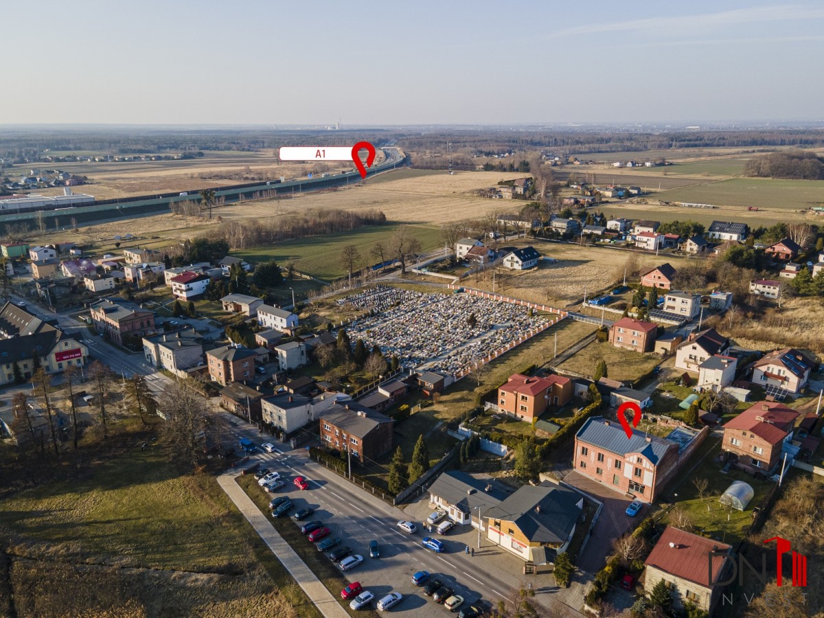 Nieruchomość jest oddalona 650 m od zjazdu z Autostrady A1 co pozwala na szybki dojazd do Katowic (ok 20 min), Gliwic i Rybnika (10-12 min) Żor (5-7 min).