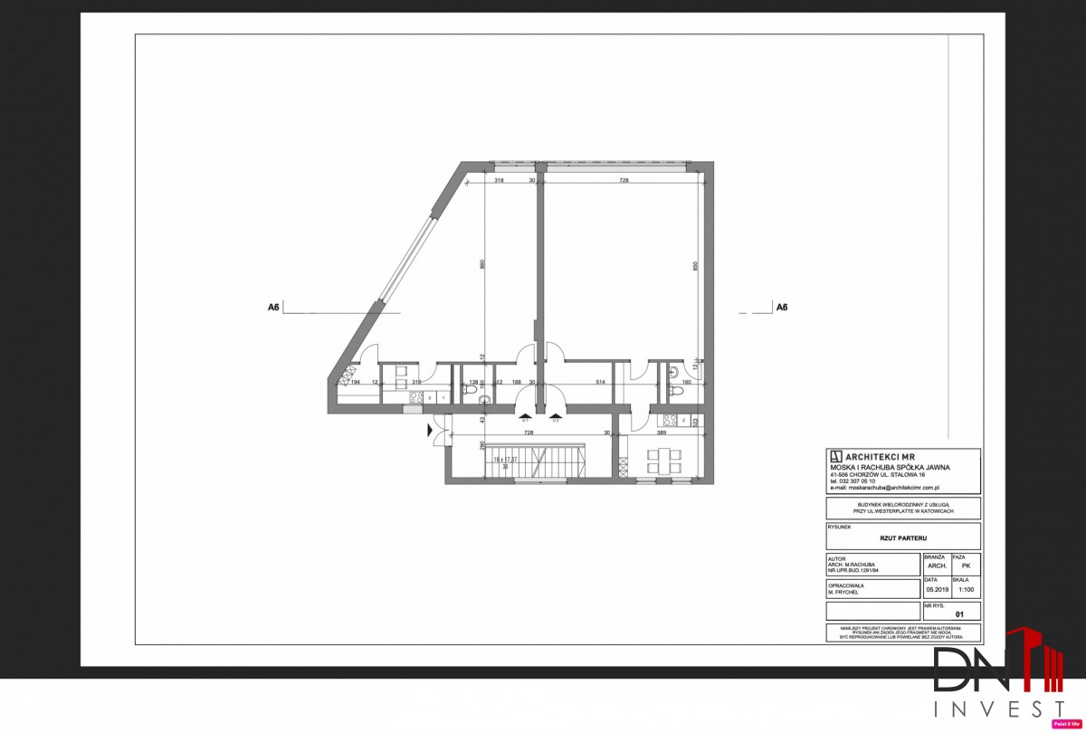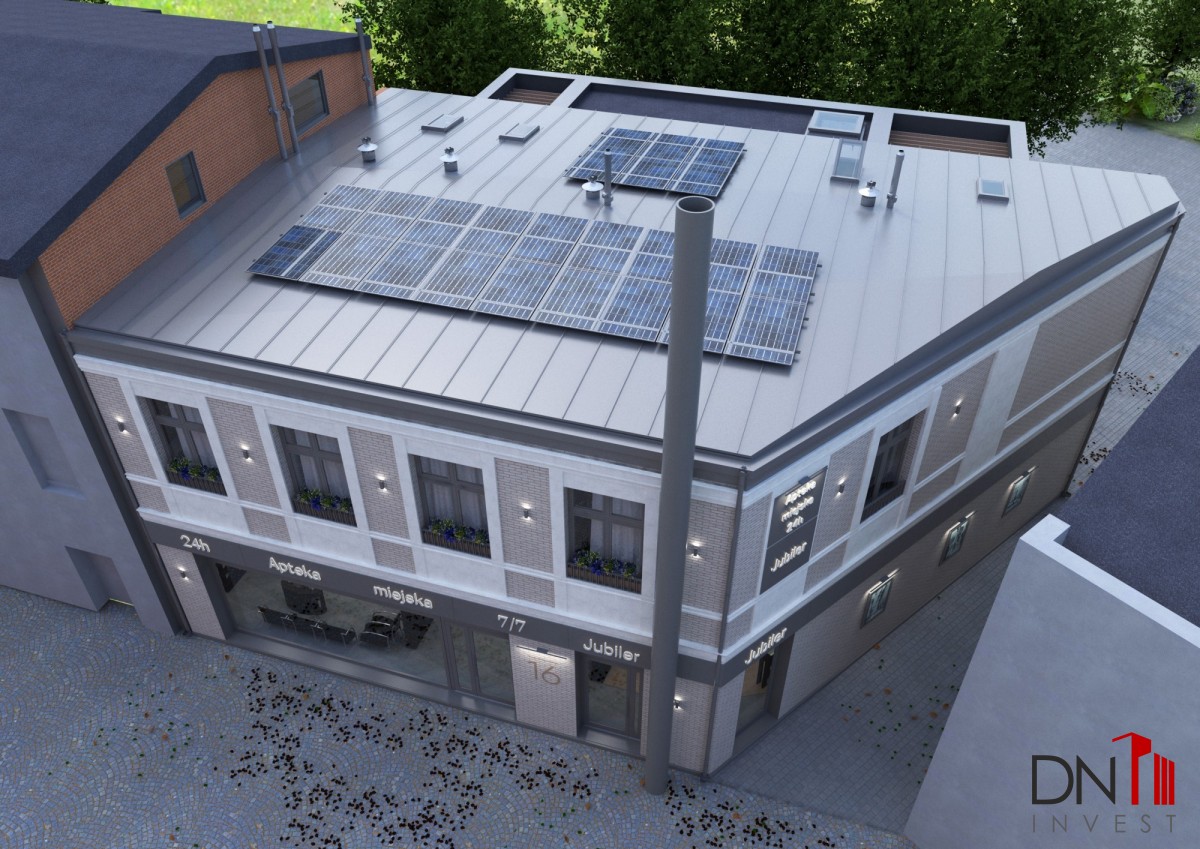 Budynek jest w stanie do remontu. Elementy konstrukcyjne są w dobrym stanie. Posiadamy aktualne pozwolenie na remont i rozbudowę. Według projektu na parterze budynku będzie znajdował się lokal handlowo-usługowy o powierzchni 159 m2. Na piętrze przewidziano dwa mieszkania o łącznej powierzchni 154 m2.