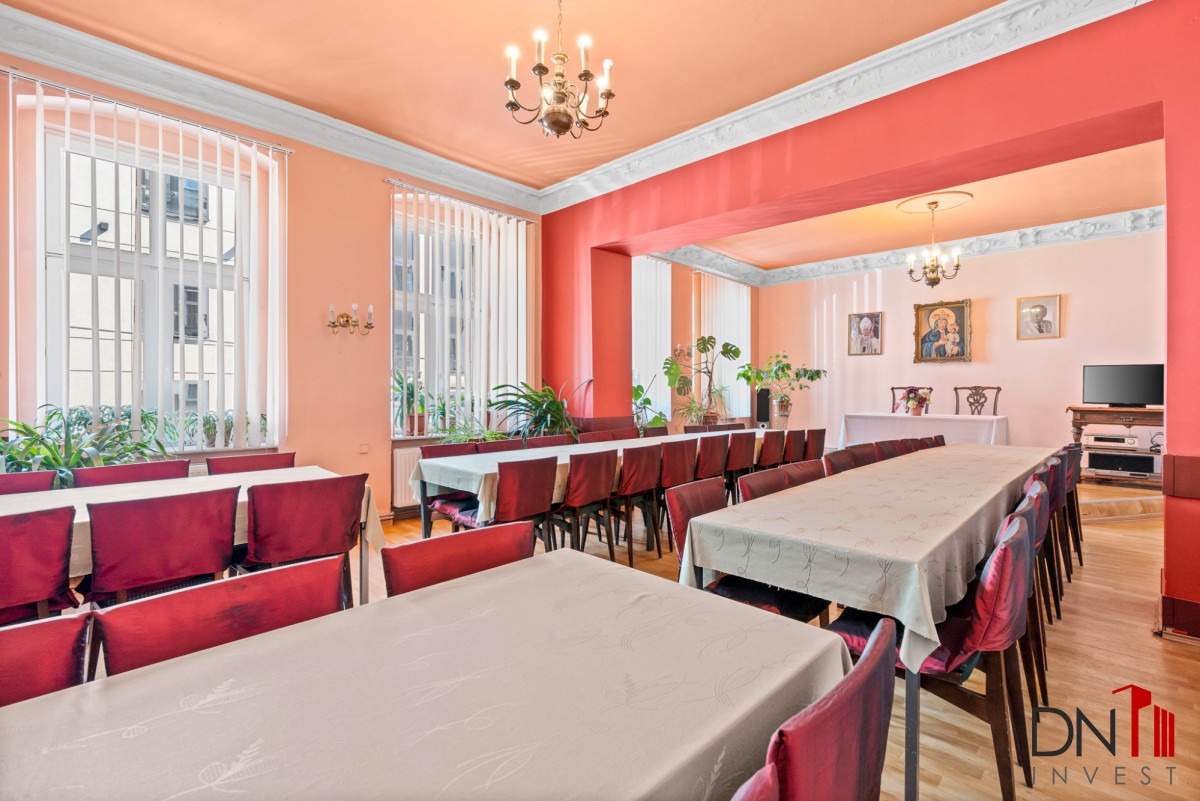 140,5 m2 składają się korytarz, duża sala konferencyjna, dwie niezależne toalety, łazienka, pomieszczenie pełniące funkcję sekretariatu z aneksem kuchennym oraz dwa gabinety. Do lokalu przynależy piwnica o powierzchni
